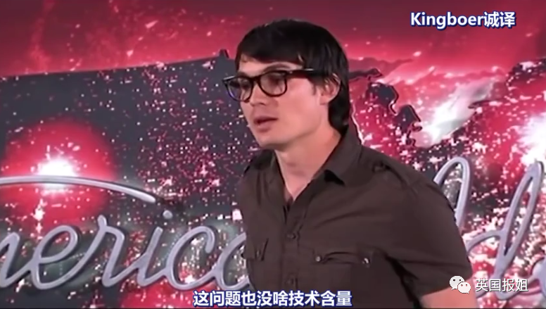 还有自我介绍编了一堆中英夹杂的开场词,结果直接被评委要求快唱歌,他沉着冷静,处变不惊地说着“ok,no problem”,然后开始唱“小和尚下山去化斋,老和尚有交代”。