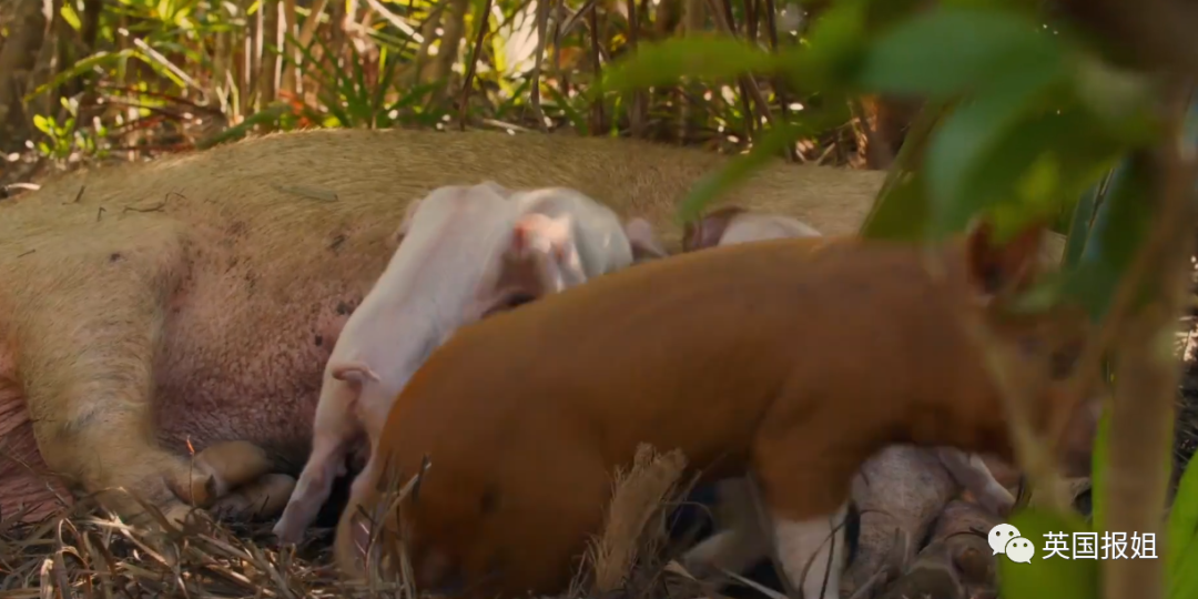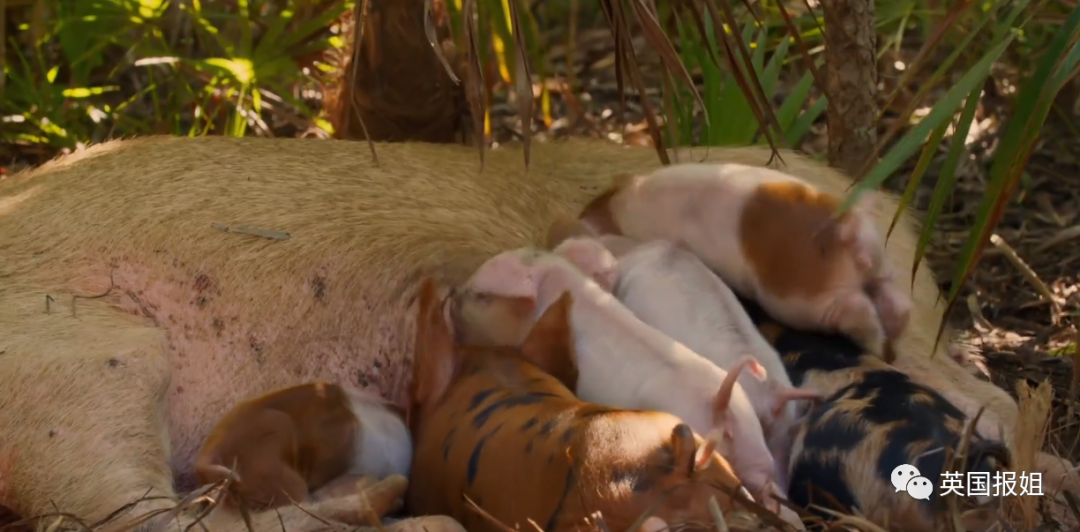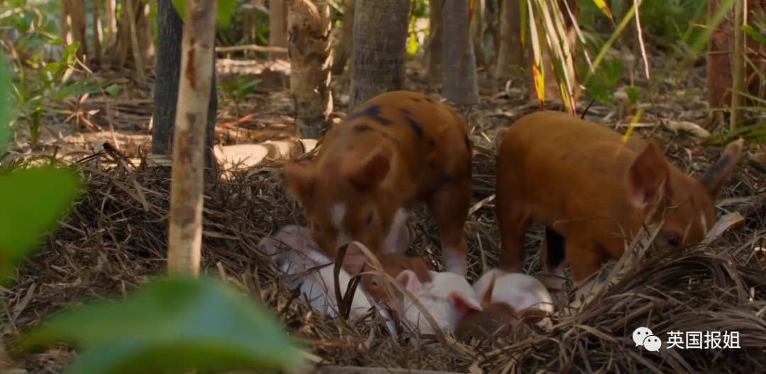 科学家们在孤岛上发现,有一些刚刚出生几天的小猪,竟然和出生了好几周的猪崽,在同一个窝里面生活。