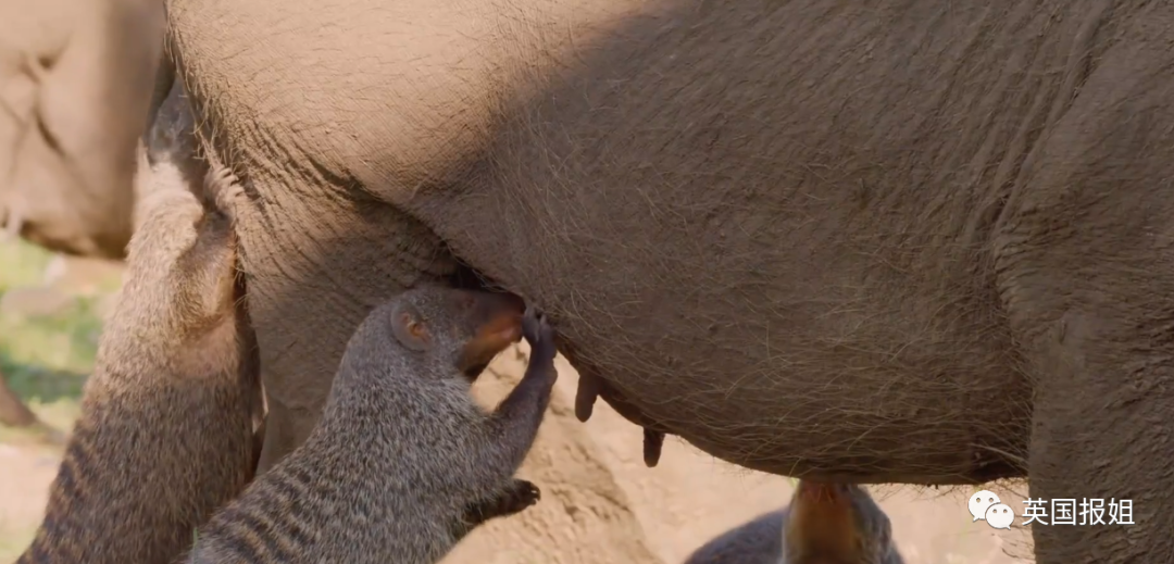 小小的猫鼬已经知道疣猪不会伤害到它们,会主动上前,帮疣猪清理它们自己无法触及的蜱虫和虱子。
