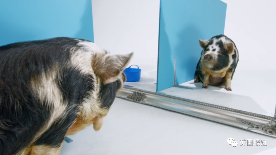 如果意识到镜子里就是它自己,猪猪就会调头过去……