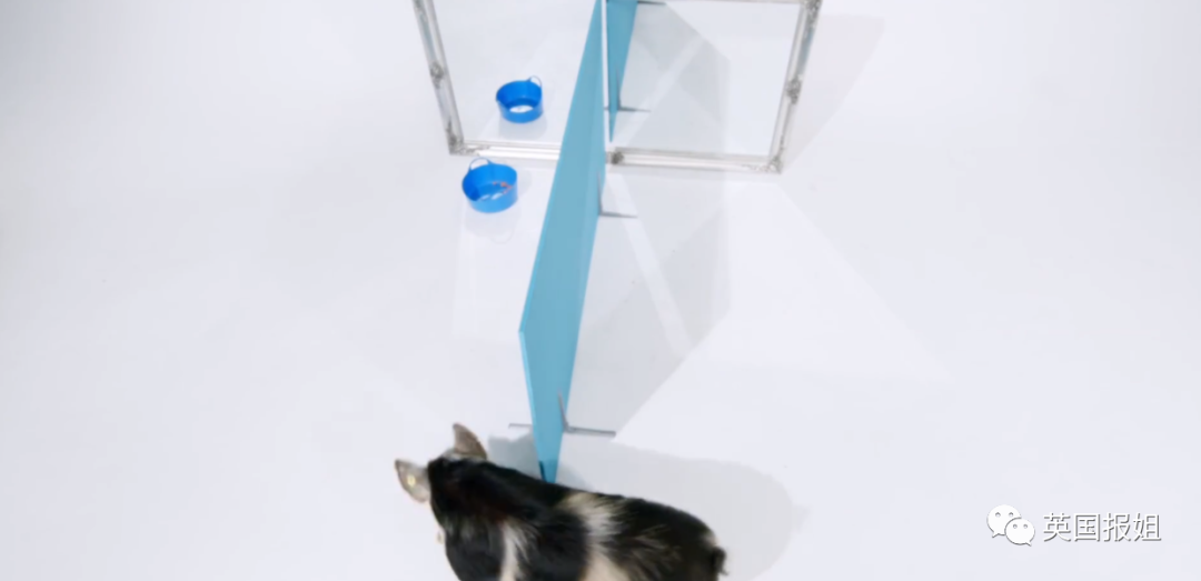 科学家们将镜子立在猪猪面前,把食物隔板另一侧。