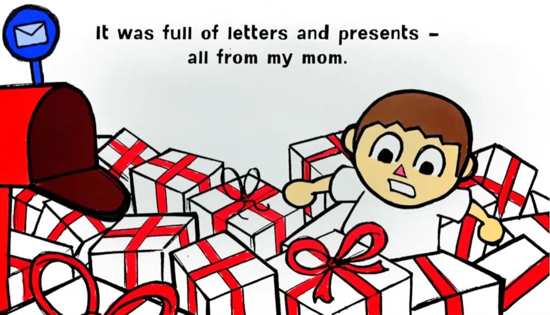 “只是想你了,觉得你会喜欢这份礼物。——爱你的妈妈”