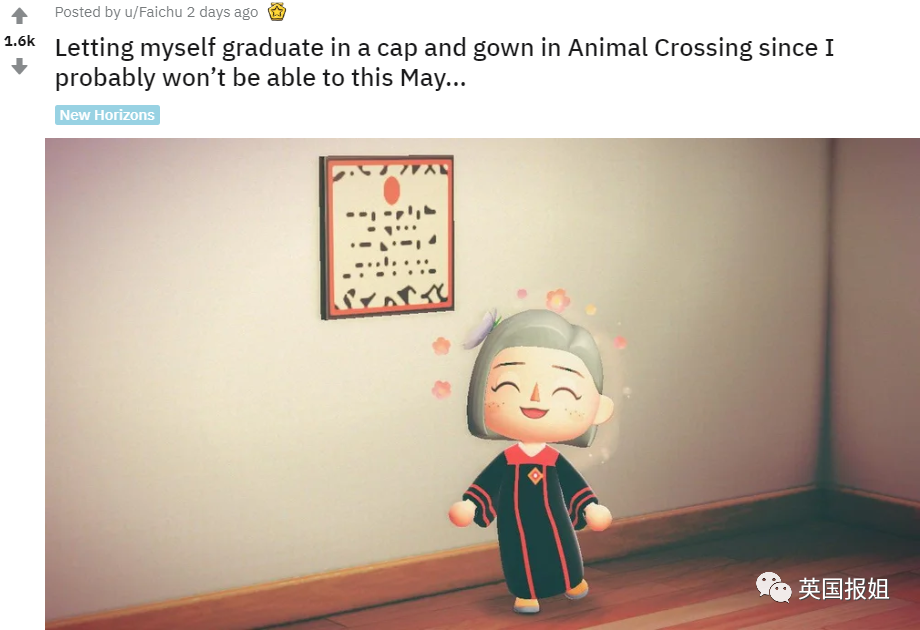 同样可能因为疫情取消的,还有不久后的毕业典礼,网友在游戏里设计了毕业服,为自己举行了毕业仪式。