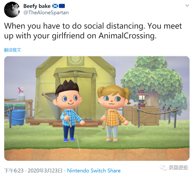 小岛上上演的,还有“隔离时期的爱情”:不少外国网友发帖说出自己的现状:因为疫情不能见面的情侣们,在动森里写着自己生活的另一种故事。