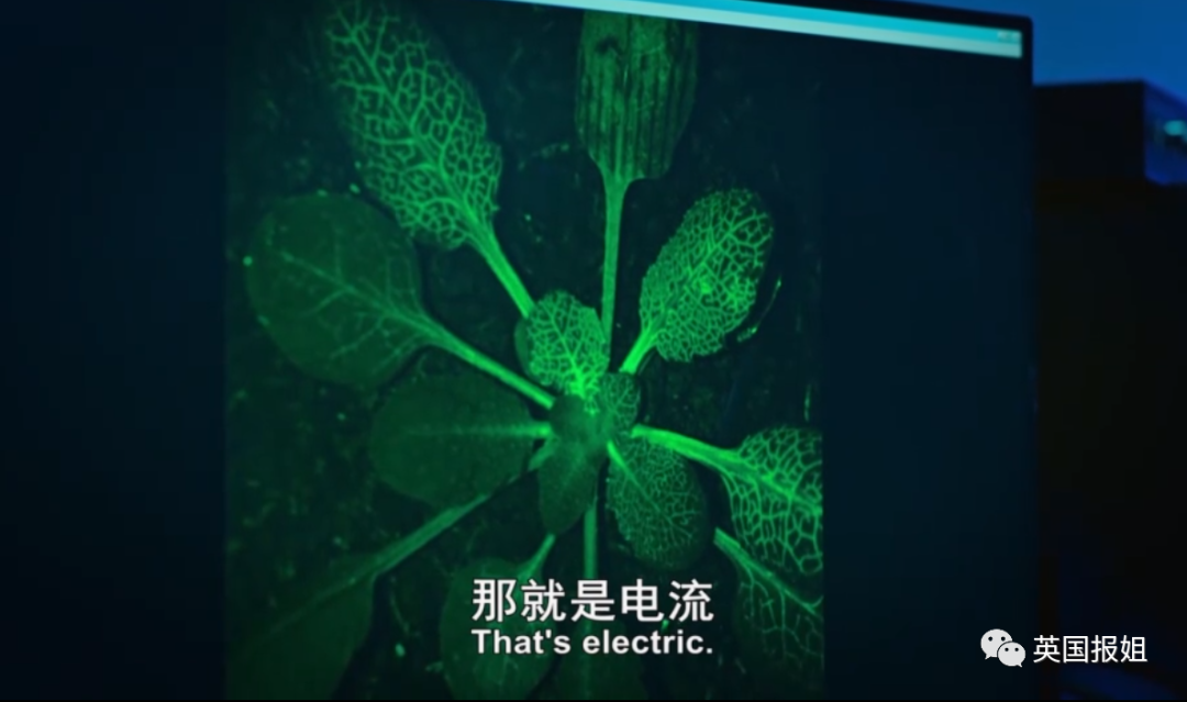 而轻轻捏一下其中一片叶子,就能看到电流通过茎秆,在其他叶片中也舒展开,慢慢发光。