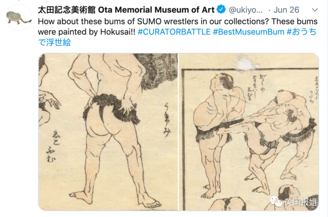 “我们收藏的这些相扑选手怎么样?这些屁屁可是葛饰北斋画的!!”