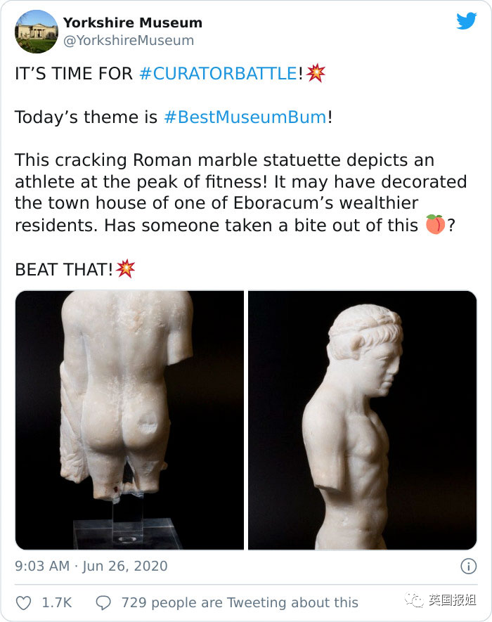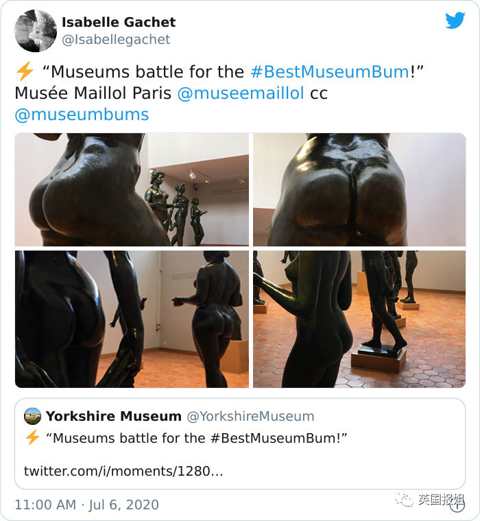 上个月,约克郡博物馆在推特上发起了一项沙雕挑战——博物馆蜜桃臀大赛。