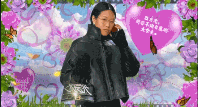 上个世纪低成本特效影楼风,背后显然是瀑布的照片而不是实景,四周配上艳俗的五毛钱玫瑰花特效,右上角一个红心气球冉冉升起,写着土味情话——