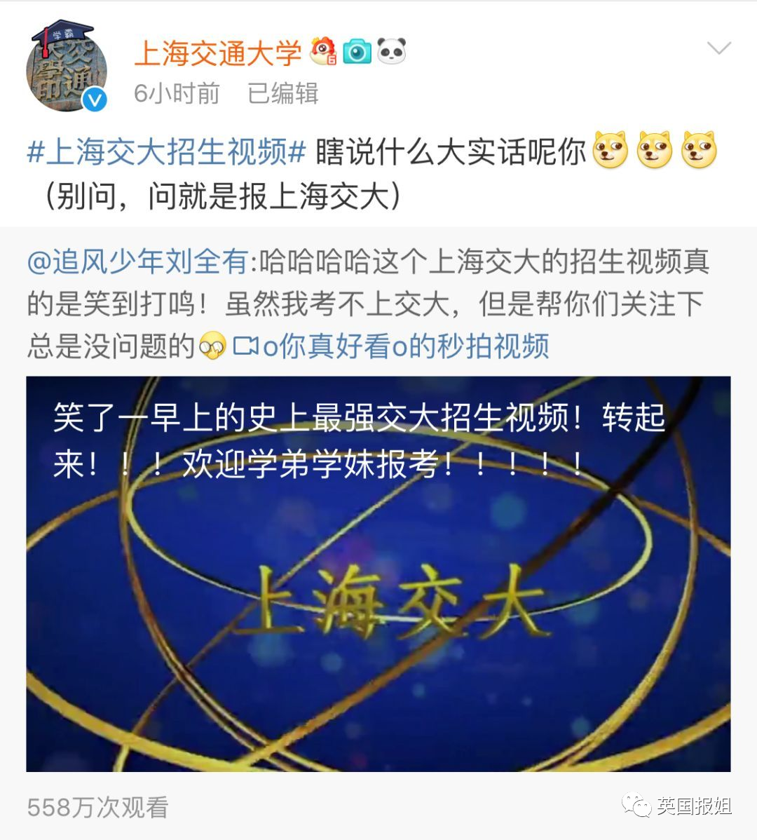 上海交大也曾经有过一段搞怪的招生视频,拿蓝翔技术学校的语气推荐自己。虽然不是官方视频,但底下基本都是一片哈哈哈。