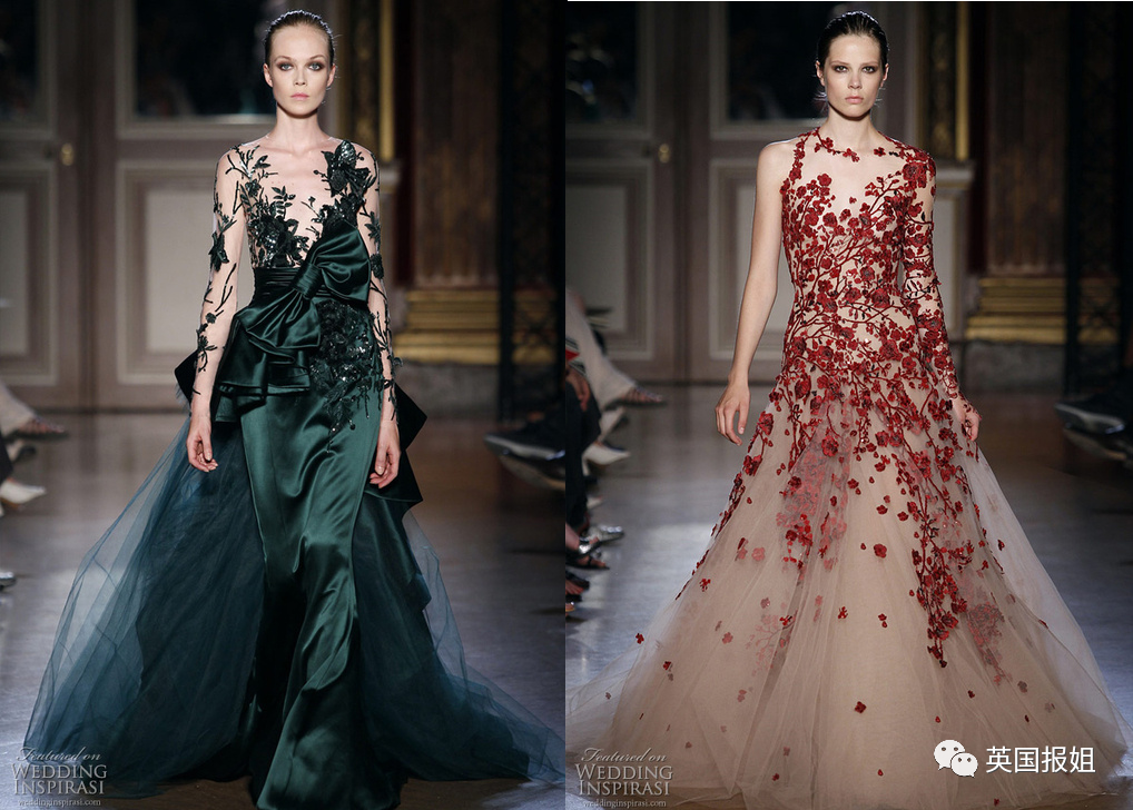 Zuhair Murad的中国风礼服,有汉服与旗袍的结构,还有泼墨山水与梅花的美感。