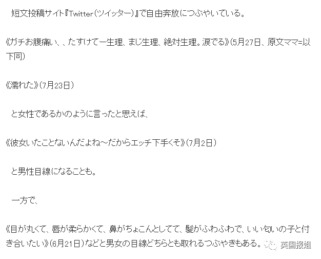 日媒从他的推特互动、帖子推断出,他似乎是个双性恋,对男性、女性都感兴趣。