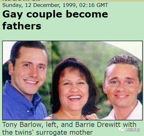 Barrie和其前夫Tony是英国第一对通过代孕拥有孩子的同性情侣,对于当时的英国来说,这条新闻有着颠覆性的意义。