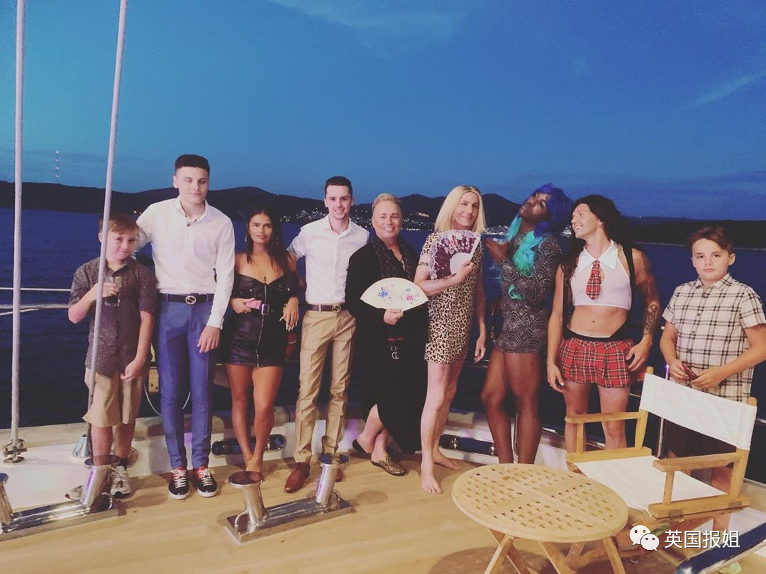 由于是家庭旅行,游艇上不光有小男友Scott,还有Barrie与前夫代孕所生的儿子和女儿,还有....前夫本人。
