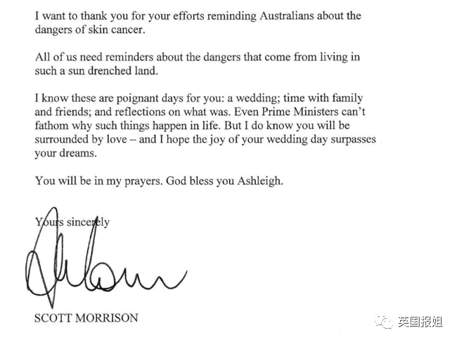 甚至连澳大利亚总理,在听到她的故事之后,也专程写了一封信,向她送上祝福。