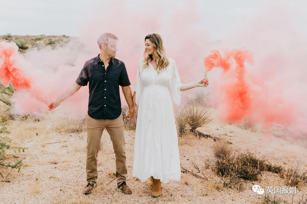 ——烟花炸开后,粉色烟雾代表女孩,蓝色烟雾就代表男孩。