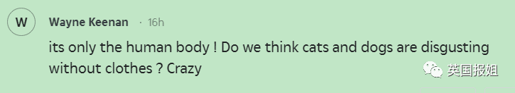 觉得节目没毛病的网友:“这只是人类的身体而已,你们会觉得猫狗不穿衣服恶心吗!疯了都”