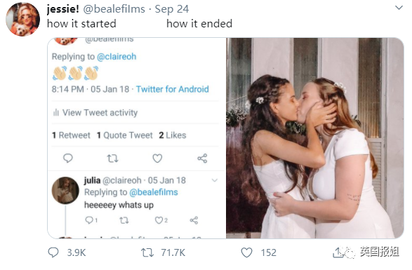 在这之前,Julia经常在推特上发一些搞怪的照片和视频。而Jessie只是默默关注Julia的众多网友之一。