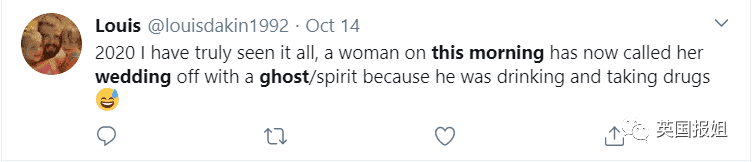 “2020真的让我见证了太多。一个女人取消了和鬼男友的婚约,因为鬼男友酗酒嗑药。”