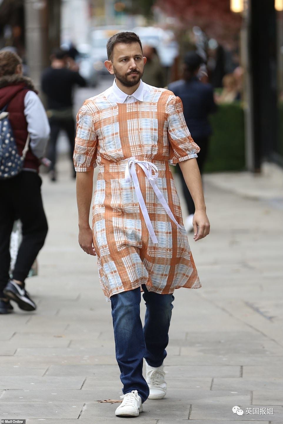 比如演员Simon Thompson已经穿上了一件类似的上街转了一圈,还去了超市买东西。
