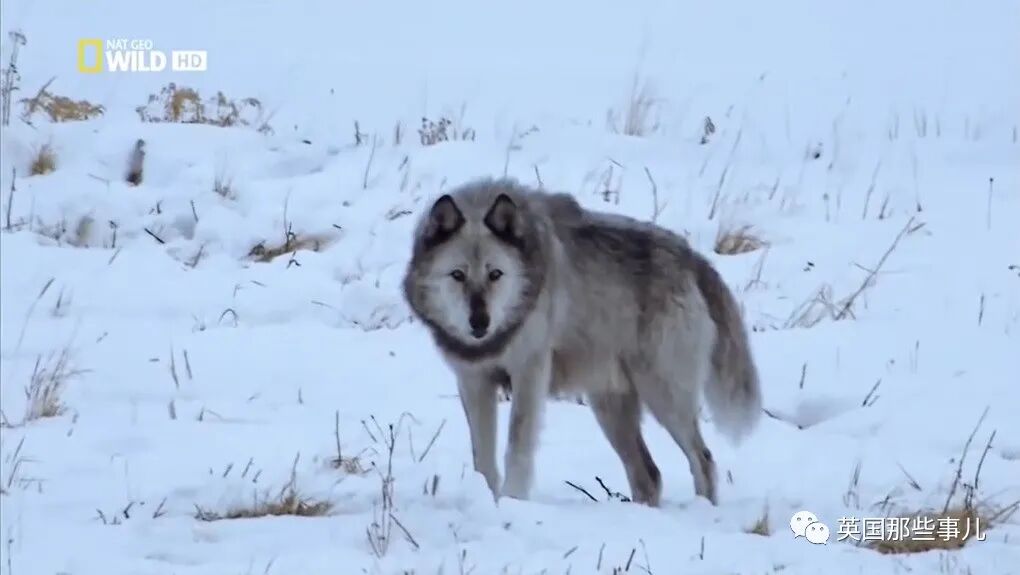 外公教小狼们捕猎时,它也是最没动力的那个,虽然身材高大、体型威猛,跑到驼鹿面前根本不敢扑过去,还被驼鹿踢了两脚。