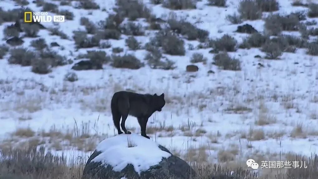 在纪录片团队的镜头里,这只看着威猛、实则二缺的黑狼,和自己玩抛接物玩得不亦乐乎,还在雪地里滚来滚去。而它忧心忡忡的母亲,在不断嚎叫,希望找到一个能养家的公狼。7号的运气不错,几个月后,一只年轻公狼来到它们所在的地方,成为新的阿尔法公狼。