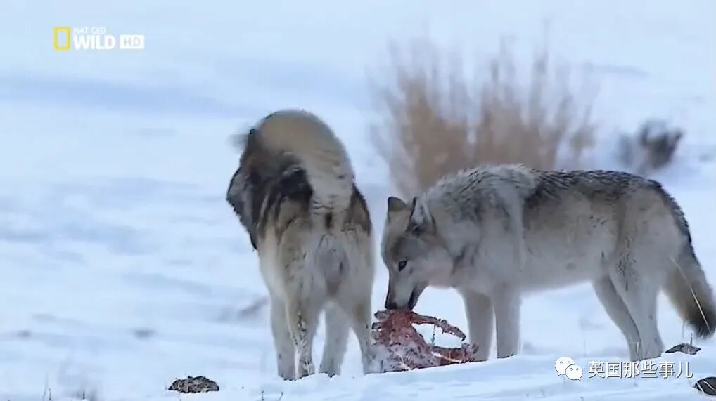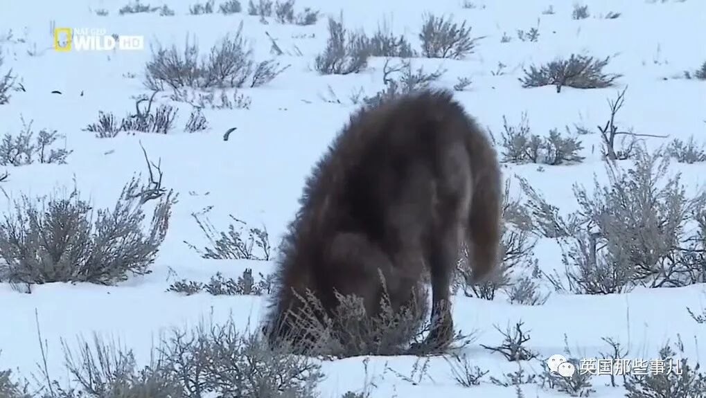 在被雪覆盖的旷野里,猎物稀少,气候酷寒,一头成年母狼带着6、7头小狼,是很难过活的。它们度过两周几乎没有食物的日子,眼看着弹尽粮绝,要饿死了。302雄起了吗?没有,还早呢……不知道是天生缺根筋,还是说面对绝境也保持乐观,302在如此困难的环境下,竟然开始自己和自己玩。