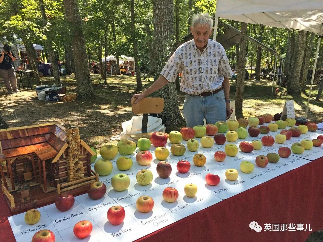 他会跟人介绍里面这些苹果的品种和它们背后的故事。