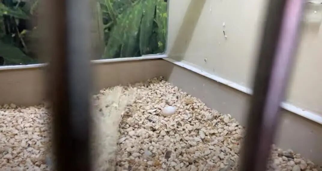 因为没有雌鸟来孵蛋,所以这枚鹦鹉蛋大概就只能放在这自生自灭了……