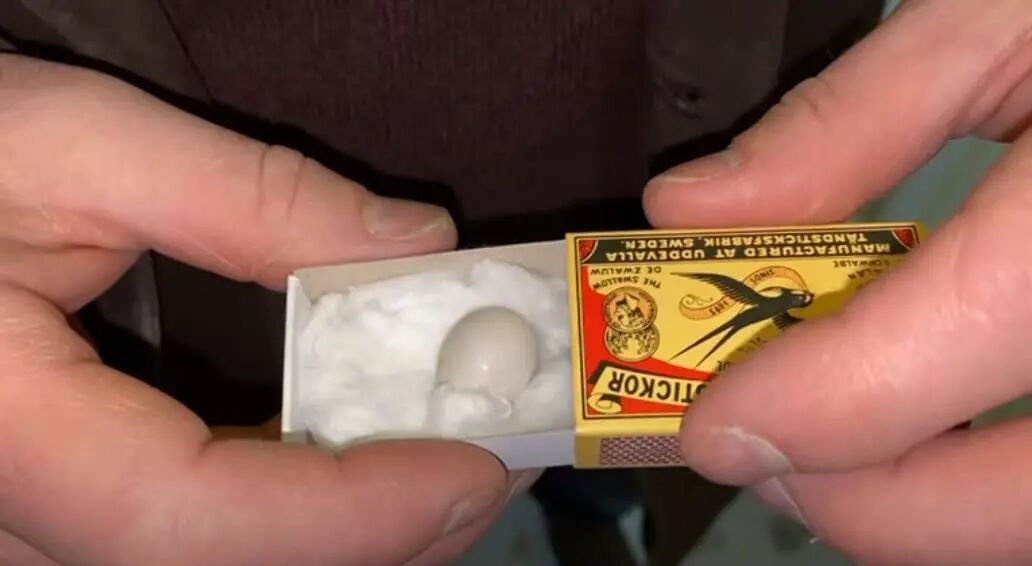 大叔把鸟蛋拿了出来,想看看这枚蛋里有没有在孕育生命。