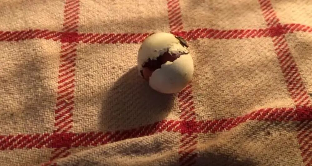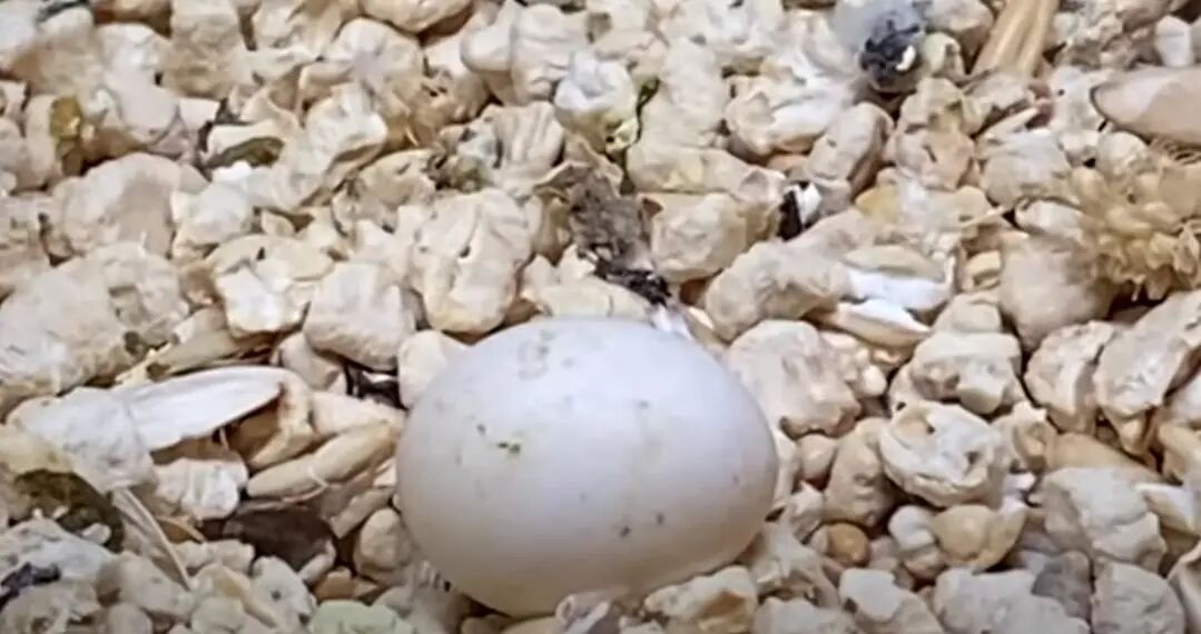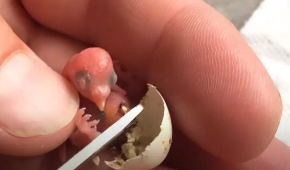 然后小鸟慢慢掀开了头上的蛋壳,露出了粉嫩的肉体。