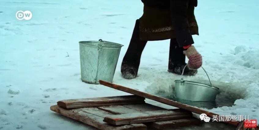湖里凿开一个洞,奶奶每天提着两个大桶去提水。