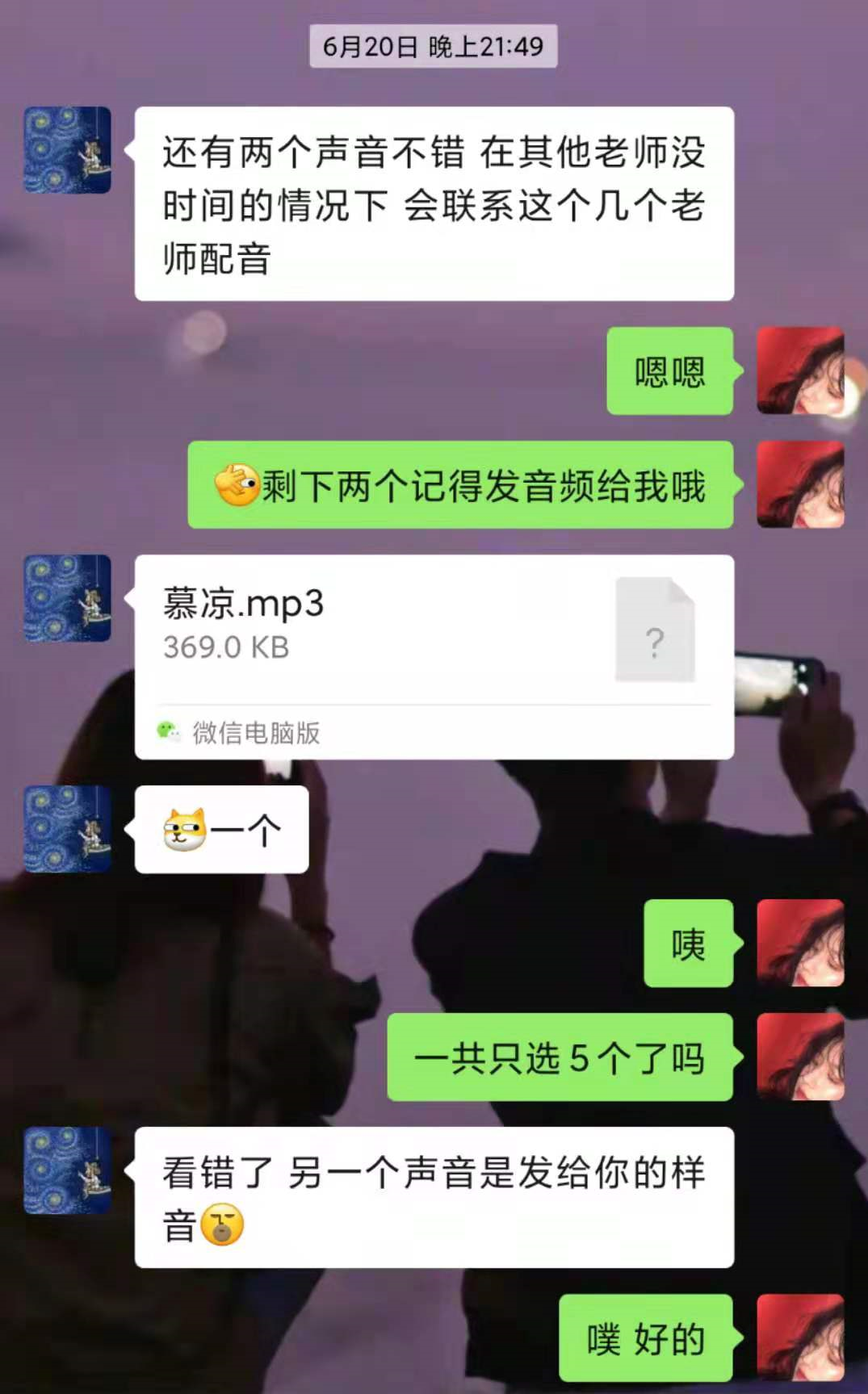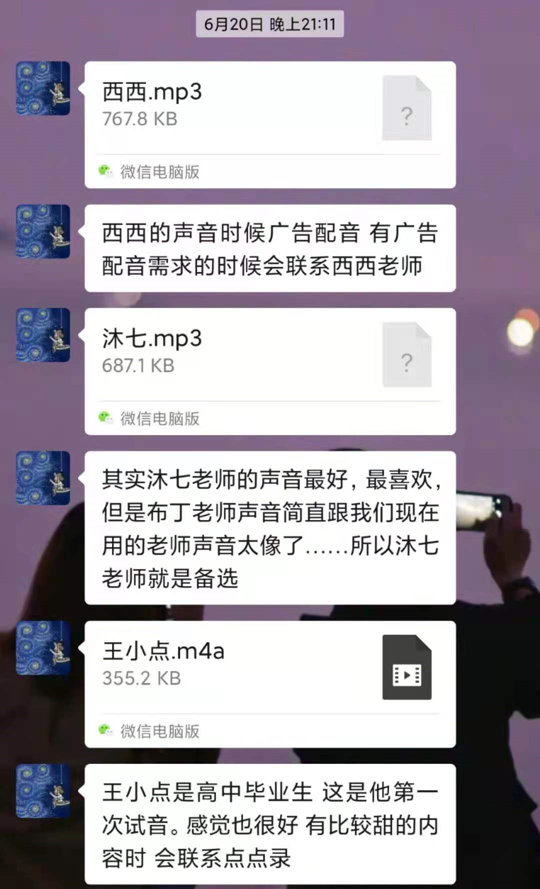 试音展示就是在甲方同意的情况下,薇薇将他们选中的音频放上来给大家听听。