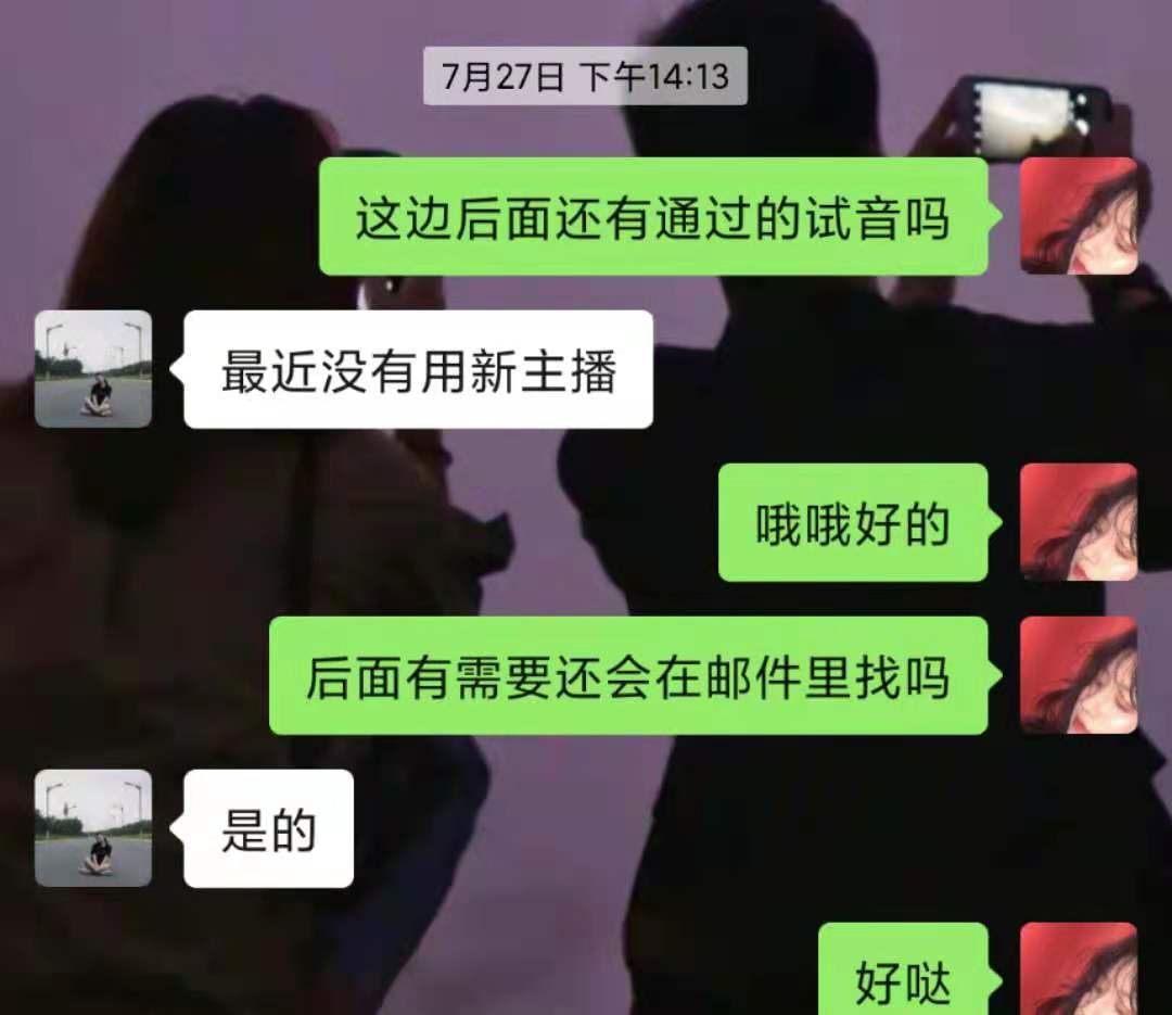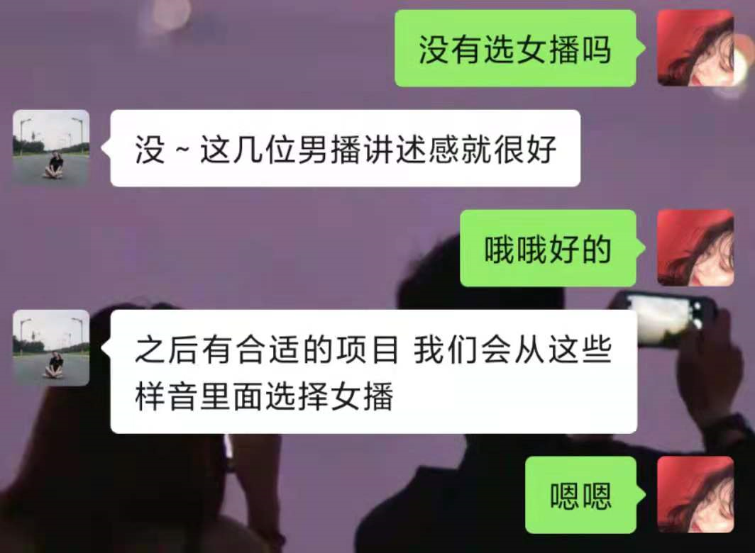 试音展示就是在甲方同意的情况下,薇薇将他们选中的音频放上来给大家听听。