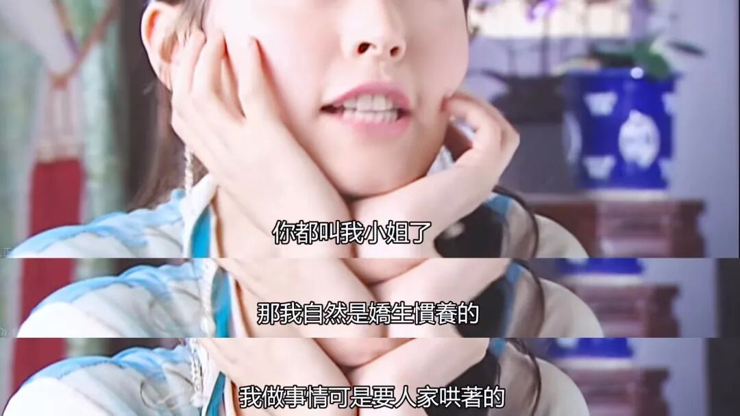 剧中名场面她托着腮说,“既然你都叫我小姐了,那我自然是娇生惯养的,我做事情可要人家哄着的”。