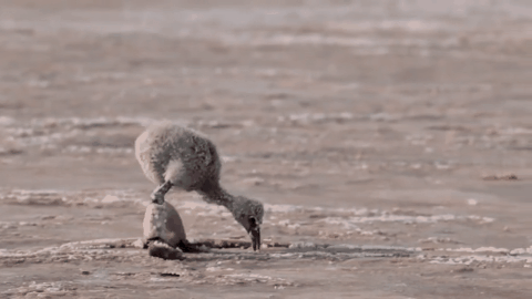 由于长时间站在水中,盐在腿上凝固,这只火烈鸟幼鸟脱离了大队伍,等待它的命运不是饿死渴死,就是被猛禽捕食…