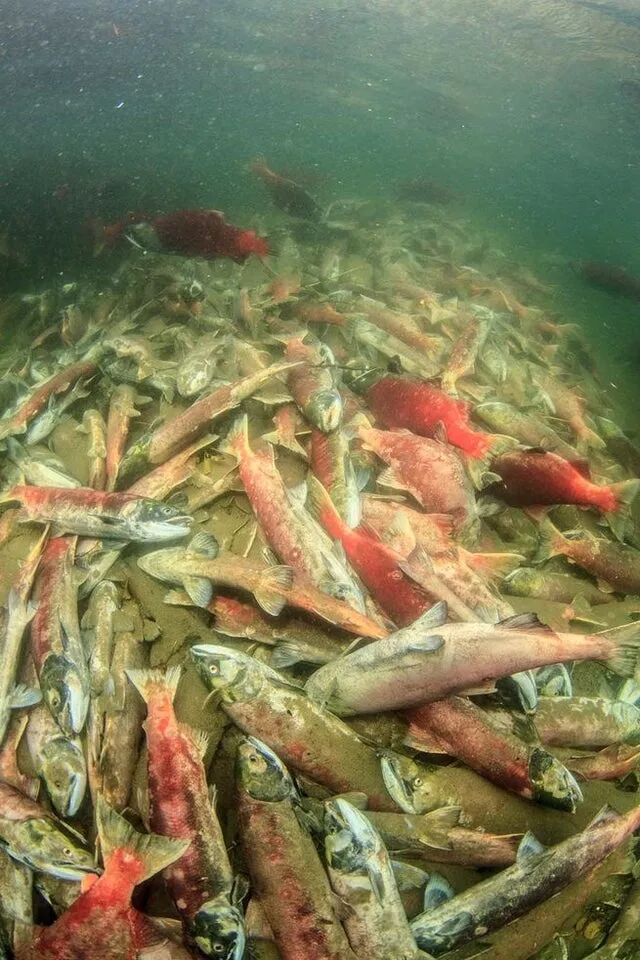 这些逆流而上,产完卵后,完成了自己生命意义的死鲑鱼…从某种意义上来说,它们的鱼生是非常成功的!