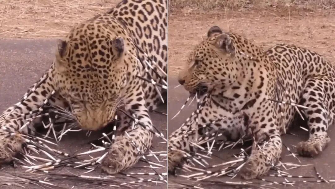对于豹子来说,攻击满身荆棘的豪猪,无疑是一种非常冒险的选择,轻则被扎一身刺,重则戳瞎眼睛甚至伤口感染而亡…