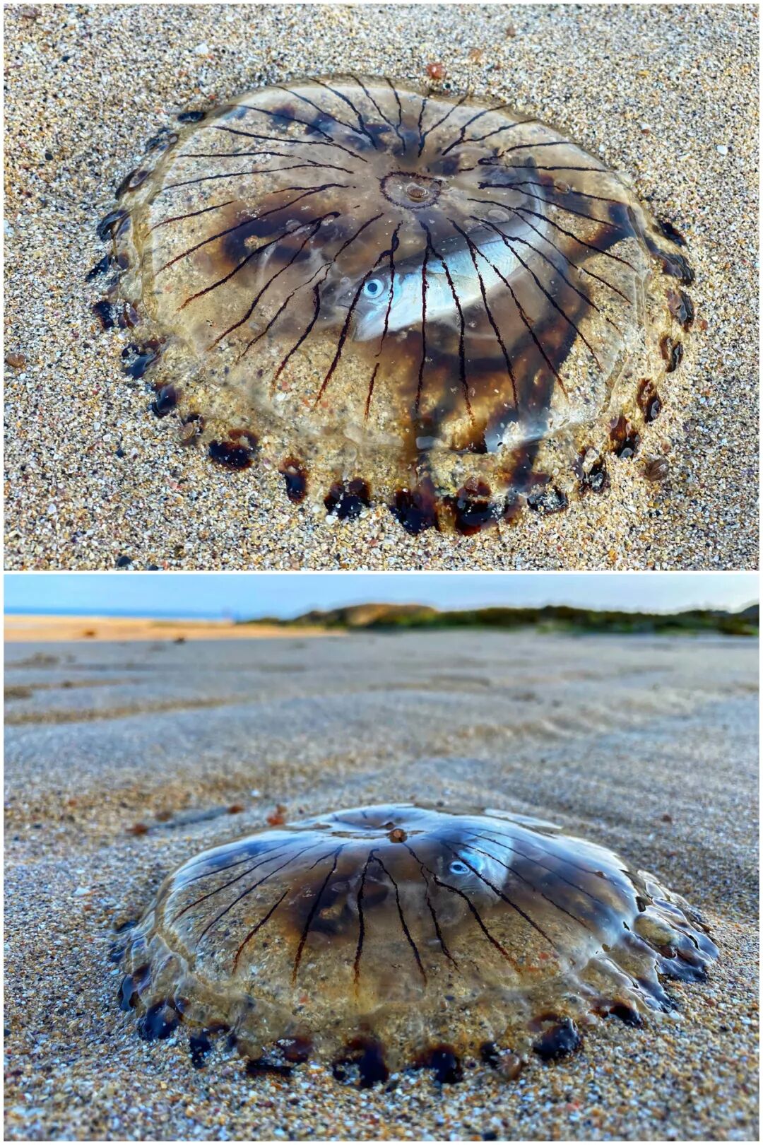 罗盘水母居然吞下了一条鱼…这下真成“指南针”了…水母本是以浮游生物为食的,然而有时候一些小鱼会在躲避猎物追击时,会躲藏到水母里面里面,但有时候也会出现翻车的现象…