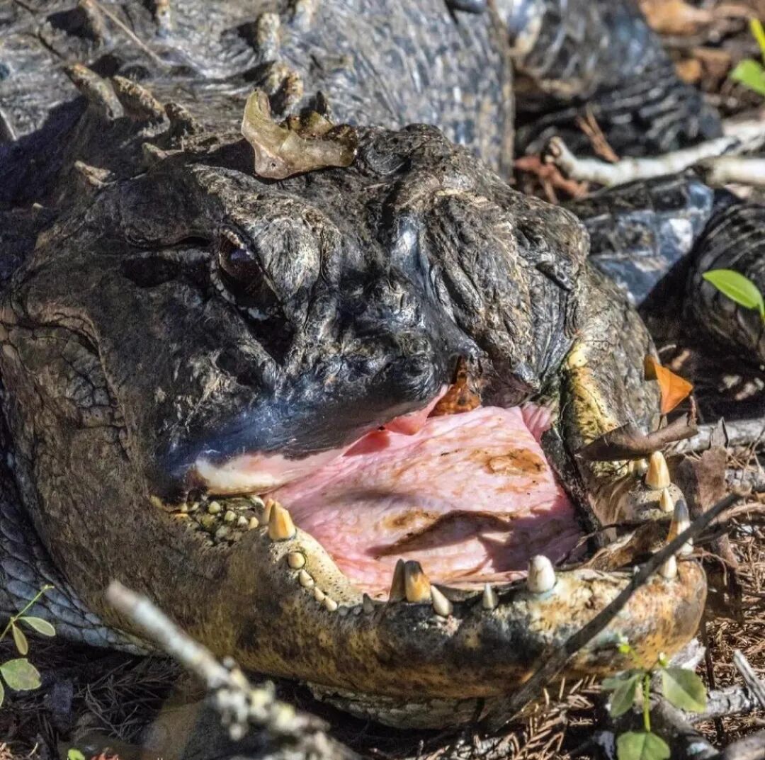 美国大沼泽地国家公园里的一条鳄鱼在打斗中失去了大部分上颚,还有一只眼睛(可能是与另外一只鳄鱼),但它依然健康的活着…