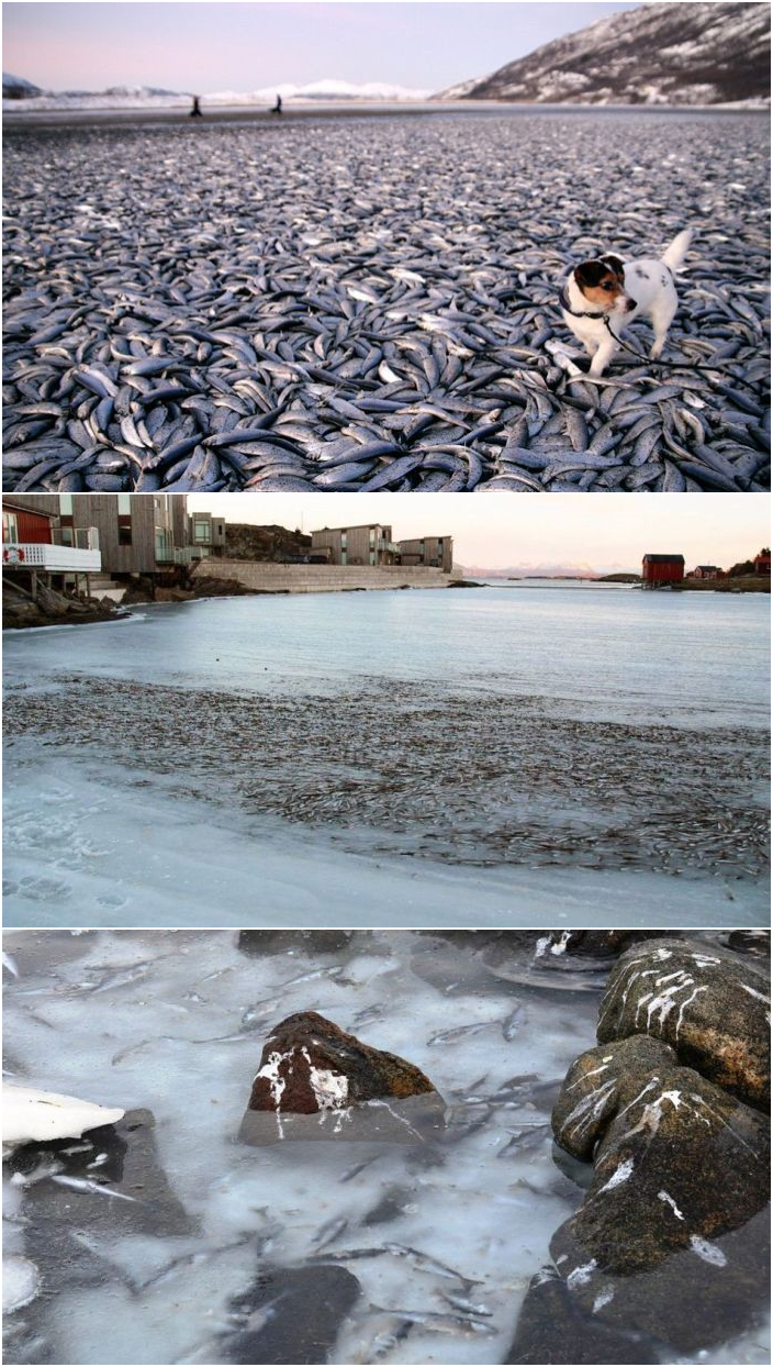 2014年1月,由于强风导致温度突然下降,挪威的一个海湾中,大量的鲱鱼被冻死在水中,事后人们回收了二十多吨的“速冻鱼”…