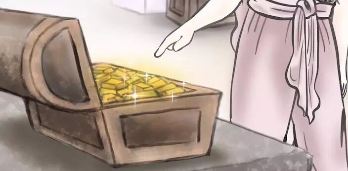 当时田里有一位正在耕种的农人,听到他们的对话,非常好奇,心想:“真的有毒蛇吗?”于是他前往一探究竟,没想到看到的却是价值连城的金子被弃在路旁。