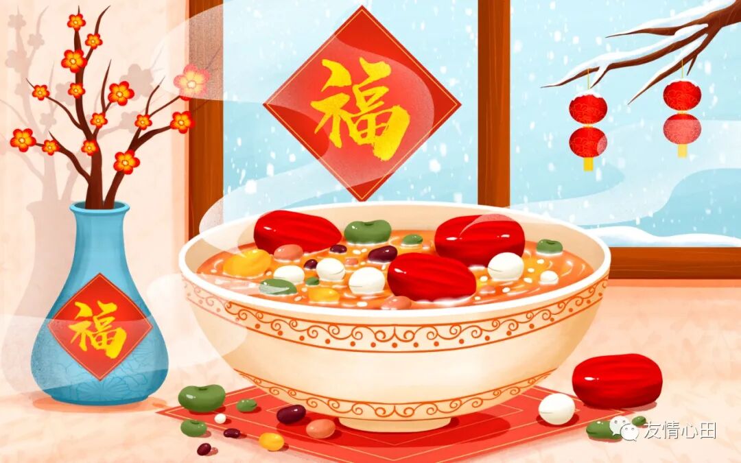 腊月初八,古人有祭祀祖先和神灵、祈求丰收吉祥的传统,但腊八喝腊八粥这一习俗,却是起源于佛教,正如清朝诗人所云“腊月八日粥,传自梵王国。七宝美调和,五味香掺入。”