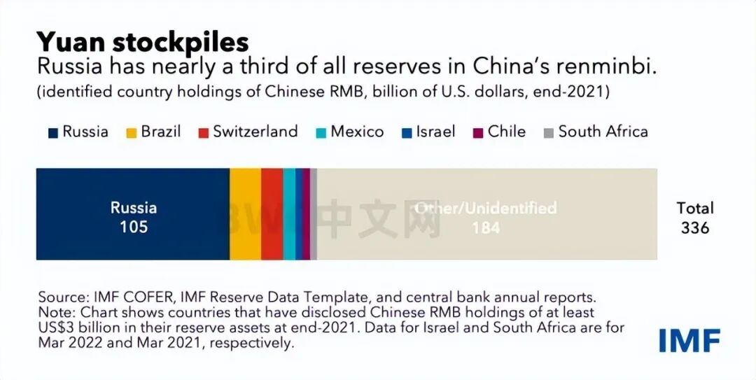 IMF在6月发布的最新报告还显示(具体细节请参考下图),除以色列抛售美元换取人民币外,还有俄罗斯、巴西、瑞士、墨西哥、智利和南非这六个国家也加入这个进程中来。