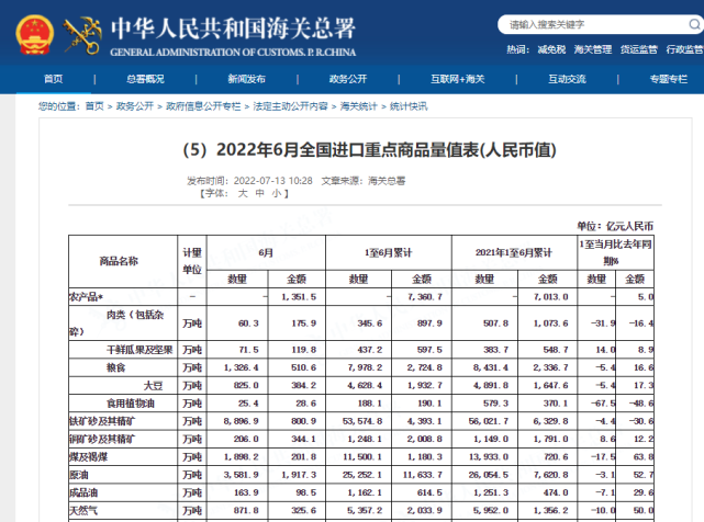 而在能源方面,海关总署公布的最新数据同时显示,中国6月进口的原油总量为3581.9万吨,上半年累计进口原油共计为2.53亿吨。6月进口天然气871.8万吨,上半年累计进口天然气5357.2万吨。6月进口成品油163.9万吨,上半年累计进口成品油1162.1万吨。这说明,上半年,2.53亿吨原油和5357万吨天然气运往中国市场。全球能源供应商青睐中国市场。(完)