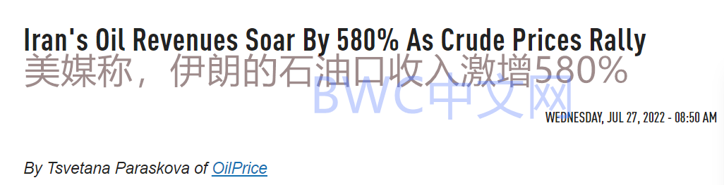 美国金融网站Zerohedge7月27日援引OilPrice最新报道,伊朗经济事务和财政部长 Seyyed Ehsan Khandouzi7月26日表示,在从 3月21日开始的当前伊朗年度的前四个月,伊朗的石油和凝析油出口收入激增 580%。