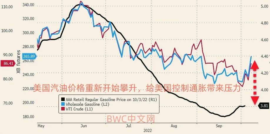 过去几天,国际油价攀升至3周以来的高位,11月交割的美油WTI原油期货涨至86美元/桶,12月交割的布伦特原油期货涨至92美元/桶,因美元走软且OPEC+暗示减产力度越来越大。此外,沙特阿美首席执行官还在10月5日警告称,全球石油市场的闲置产能极低,当前的油价表明市场高度关注“短期经济而非供应基本面”。
