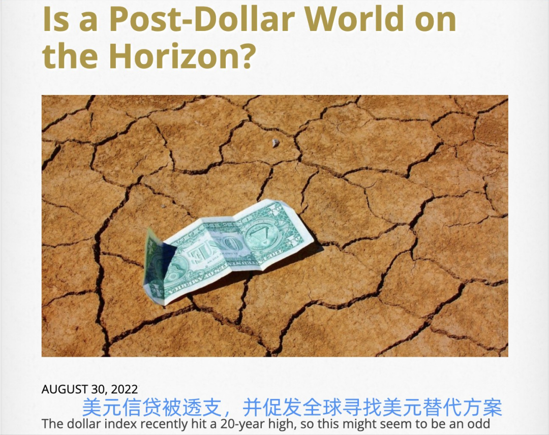 经常阅读BWC中文网的读者朋友们应能了解到去美元化并不是什么新鲜事,但对美联储资深经济学家和美国“石油大王”家族也公开承认美元危机的可能性而言,这是新的。
