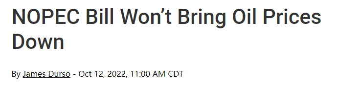 对此,分析师詹姆斯·杜尔索(James Durso)10月12日称,NOPEC法案不会降低油价。当然,NOPEC 也可能推高油价并结束石油美元的主导地位,特别是如果沙特以非美元货币向其大客户销售石油时,石油美元就将面临终结。从这个角来说,石油美元是否会终结,主动权掌握在沙特和大客户的手中。