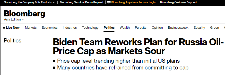 一些欧盟官员称,相比于欧洲准备好接受经济打击为代价以限制俄石油收入,但美国的角度似乎更加现实,美国认为石油供给更重要。值得注意的是,欧盟方面希望大约在11月25日前设定价格上限,也就是在欧盟对俄石油运输新制裁正式生效的约10天之前作出决定。然而,美媒的消息表明,预计在11月中期选举结束前,美国不会就此事作出决定。显然,这让全球的看客们吃惊的是,美国可能把自己的盟友当成了限制俄石油的“炮灰”。