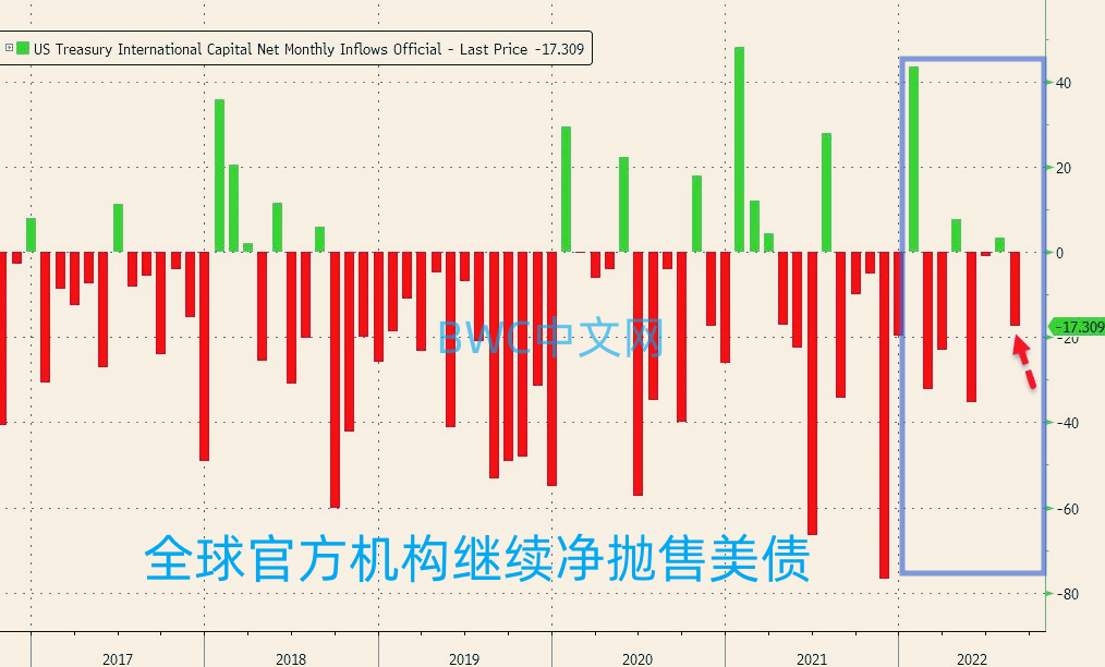 与此同时,据世界黄金协会在12月2日发布的报告表明,全球央行抛售美债置换黄金的趋势也一直在持续,比如,土耳其几乎清仓了美债以置换黄金,值得注意的是,一些经济专家的观点分析认为,全球央行很有可能会卖出大量美债,如果随着美国违约风险的增加,也存在持续大幅净抛售美债可能性。